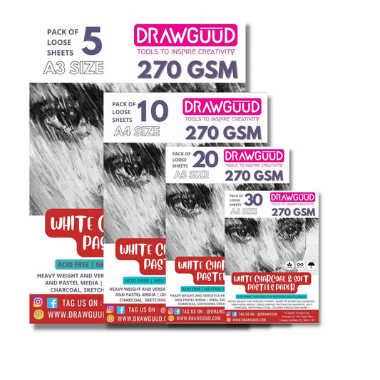DRAWGUUD Pack of 2 270GSM Charcoal & Pastels Paper strong surface suitable for charcoals, oil pastels, crayons, and more.