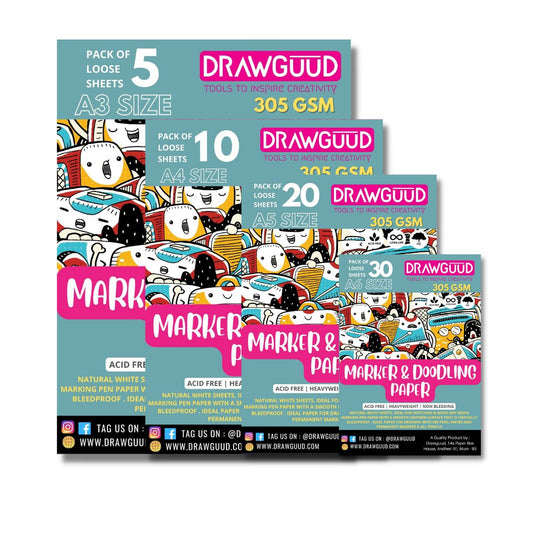 DRAWGUUD Pack of 2 305 GSM MARKER & DOODLING PAPER FOR PAINTING, LOOSE SHEETS