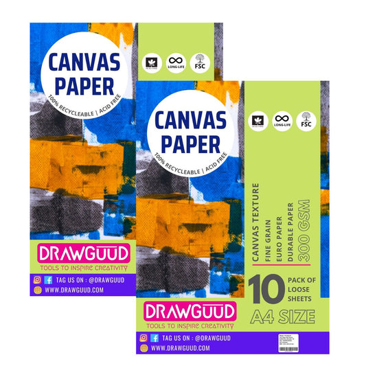DRAWGUUD Pack of 2 300 GSM CANVAS TEXTURE PAPER FOR PAINTING, LOOSE SHEETS
