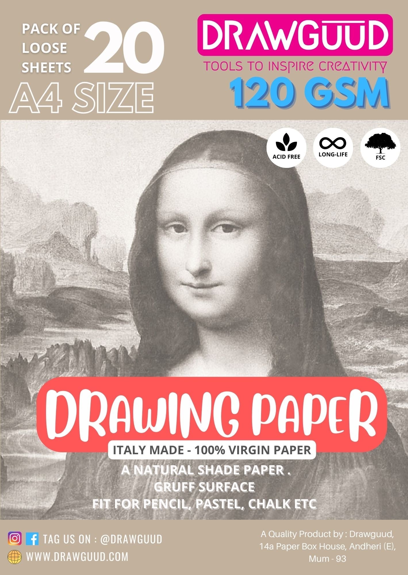 PAPEL DE DIBUJO DRAWGUUD 130 G/M HOJAS SUELTAS